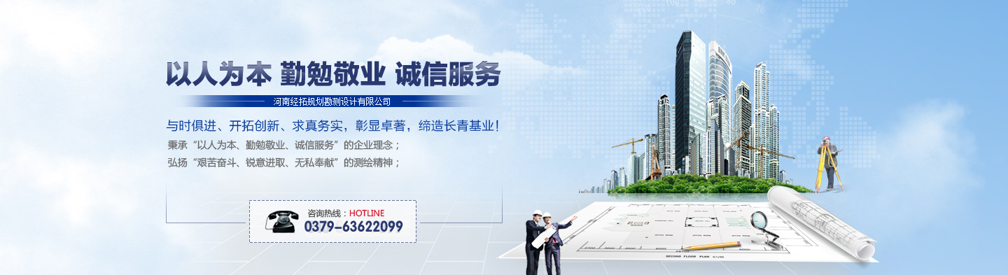 河南經拓規劃勘測設計有限公司成立于2015年4月,是一家獨立的企業法人實體公司,地址在洛陽市西工區芳林南路芳林大廈11樓1111室。法定代表人趙芳,公司注冊資金500萬元,現擁有測繪乙級、土地規劃乙級資質。主要開展的業務有:無人機測繪、三維立體模型、1:500、1:1000地形圖測繪、土石方測繪報告、設施農用地測繪備案及上圖入庫、企業土地報批、進出平衡方案編制、臨時用地復墾方案編制、社會風險評估報告、土地預審、土地調查、地籍測繪、勘測定界報告、宗地圖、用地圖及面積量算等。 河南經拓規劃勘測設計有限公司歡迎您! 公司組建了一支經驗豐富、技藝高超、富有開拓精神的人才隊伍,創建了一套行之有效的企業管理機制和完善的企業文化。自公司成立以來,我們本著“團結奮進、開拓進取、務實效率高、服務優良”的宗旨,竭誠為廣大客戶提供優良服務。
